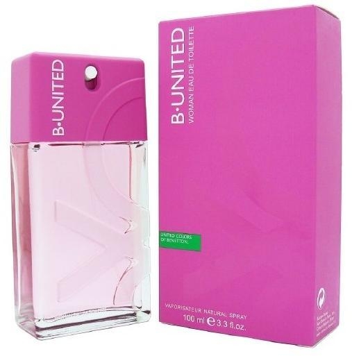 Nová vůně B-United se zaměřuje na ty, kterým nejsou lhostejné hry barev a vůní. Benetton B-United Woman se otevírá hřejivými tóny sorbetu z červeného ovoce (jahody, maliny, rybíz) spolu s douškem koktejlu Caipirinha. V srdci vůně Benetton B-United Woman rozkvétají frézie, pivoňky a růže, dohromady tvoří s ovocnými tóny jedinečnou kombinaci, která ve svém základě nechybí dotek orientálních dřev, vanilkových květů a smyslného pižma.