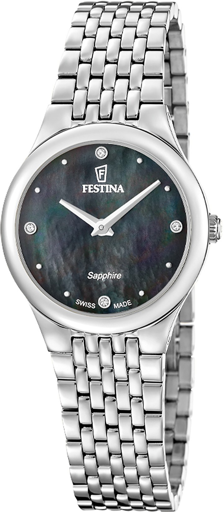 Původně se zaměřovala hlavně na pánské sportovní modely s chronografy a robustní konstrukcí. Postupem času však rozšířila nabídku i o dámské kolekce, které zaujmou jemnými tvary, tenkými náramky a třpytivými detaily se Swarovski kamínky. Dnes Festina nabízí hodinky vhodné do práce, na sport, do města i na společenské události.