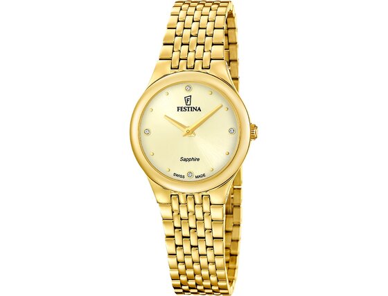 Původně se zaměřovala hlavně na pánské sportovní modely s chronografy a robustní konstrukcí. Postupem času však rozšířila nabídku i o dámské kolekce, které zaujmou jemnými tvary, tenkými náramky a třpytivými detaily se Swarovski kamínky. Dnes Festina nabízí hodinky vhodné do práce, na sport, do města i na společenské události.