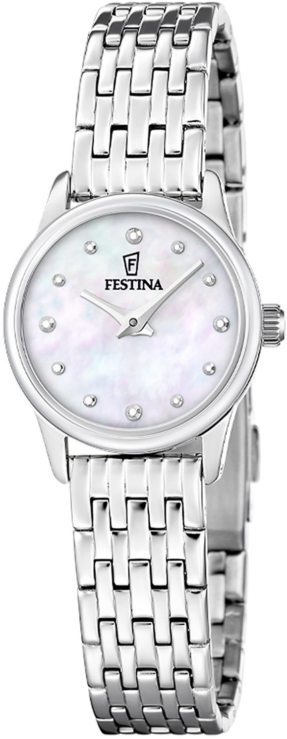 Původně se zaměřovala hlavně na pánské sportovní modely s chronografy a robustní konstrukcí. Postupem času však rozšířila nabídku i o dámské kolekce, které zaujmou jemnými tvary, tenkými náramky a třpytivými detaily se Swarovski kamínky. Dnes Festina nabízí hodinky vhodné do práce, na sport, do města i na společenské události.