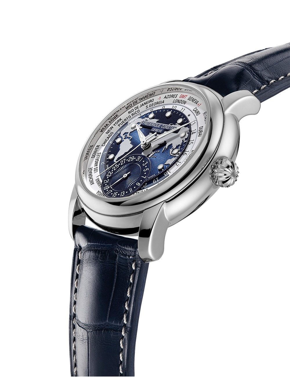 Frederique Constant FC-718NWWM4H6 Mens Watch Classic Worldtimer Automatic 42mm 5ATM