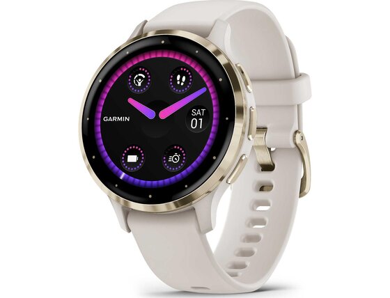 Neváhejte a vyšperkujte váš styl s náramkovými hodinkami Garmin VENU 3S Ivory/Soft Gold Ivory.