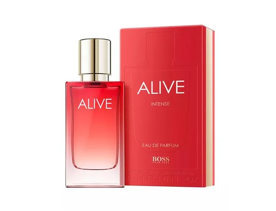 Parfémovaná voda Boss Alive Intense značky Hugo Boss je ambrovo-dřevitá vůně pro ženy, uvedená na trh v roce 2022.