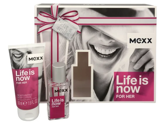 Mexx Life Is Now for Her Dárková sada, toaletní voda 15ml + tělové mléko 50ml