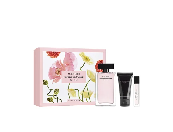 Narciso Rodriguez For Her Musc Noir Dárková sada, Parfémovaná voda 100ml + Parfémovaná voda 10ml + Tělové mléko 50ml