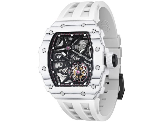 Pánské hodinky Tsar Bomba TB8209CF-05 Mens Watch Elementar Carbon Fiber Automatic 44mm 5ATM vám přidají na eleganci a podpoří váš styl. S kvalitním zpracováním z dílny značky Tsar Bomba se nemusíte obávat, že šlápnete vedle.