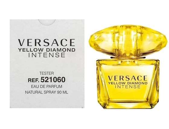 Versace Yellow Diamond Intense je hlbšou interpretáciou vône Yellow Diamond. Je koncentrátom energie, žiarivosti, čistoty a priezračnosti. Kvetinová vôňa s lahodnými ovocnými a drevitými akcentmi, výrazná a pretrvávajúca. V úvode čaruje stredomorskou rafinovanosťou bergamotu, citrónu a noblesného neroli v úchvatnej kombinácii s neodolateľnými a atraktívnymi akcentmi hruškovej drene. Srdce je oslavou intenzívnej a pôvabnej ženskosti, ktorá je vyjadrená pomocou krémových, zamatových tónov jazmínových lupienkov a osmantu, doplnených vzácnymi tónmi pomarančových kvetov a frézie. Zmyselne zahaľujúci základ sa opiera o hlboké a energické tóny ambrového dreva a guajaku, obohatené vášnivosťou živice a zvodnosťou pižma.